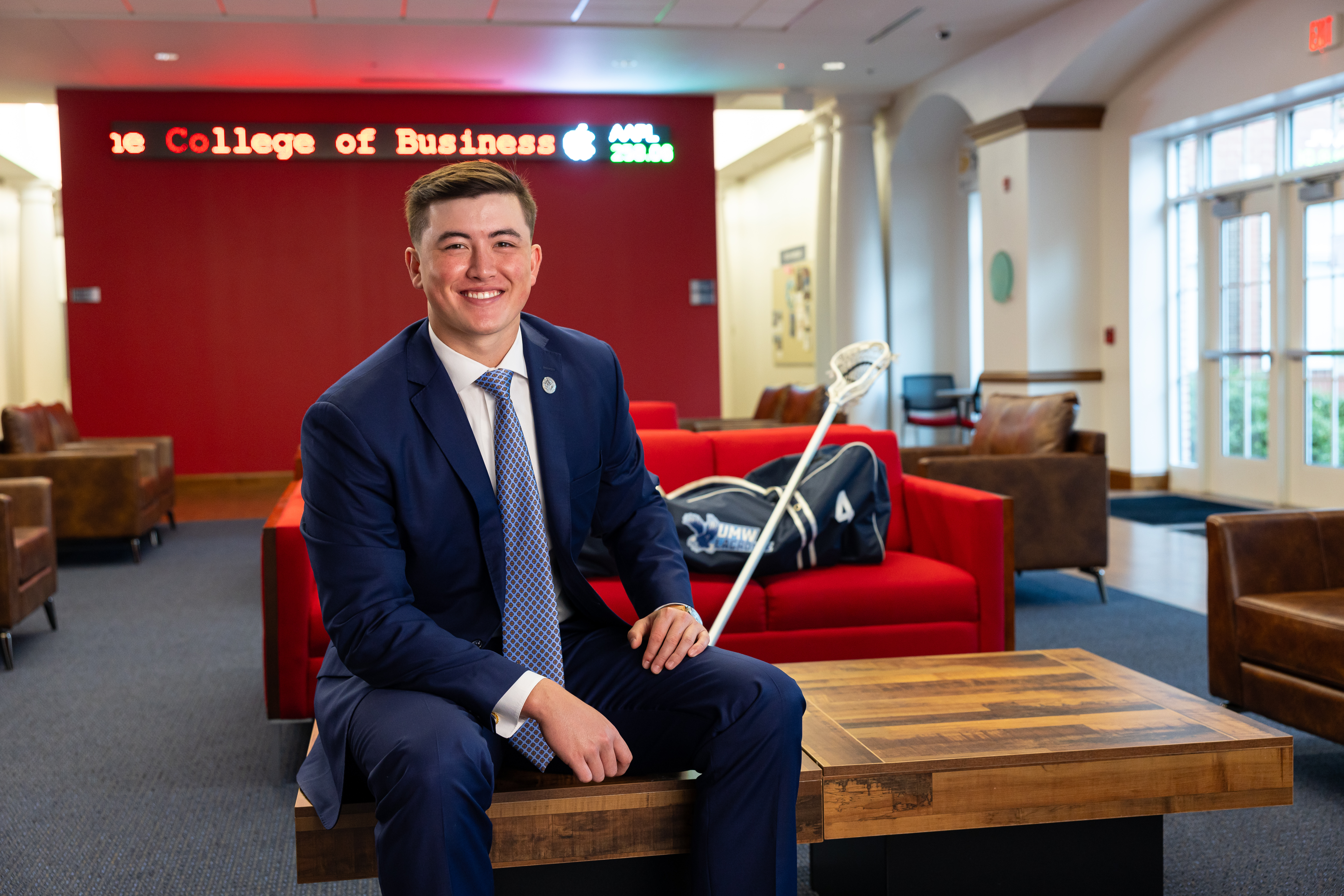 “UMW checked all the boxes,” said Hooker, who grew up playing lacrosse at Jesuit College Prep School of Dallas. He was looking for a school in a cool college town with an AACSB-accredited business program and the chance to compete athletically. “I was excited to leave Texas for something new,” he said.